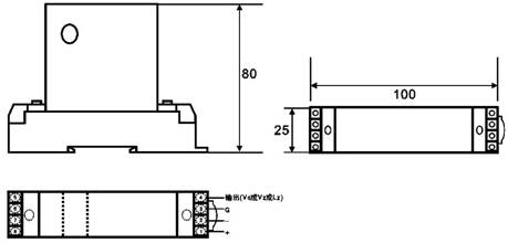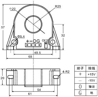 直流電流傳感器機(jī)械參數(shù)與接線圖