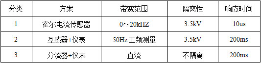 霍爾電流傳感器結(jié)合了電流互感器和分流器的所有優(yōu)點(diǎn),克服了互感器和分流器的不足,如表1所示: