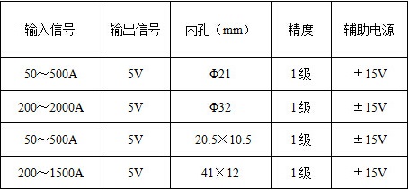 一般情況下,可以根據(jù)輸入信號、內(nèi)孔尺寸來選擇霍爾電流傳感器 。開環(huán)霍爾電流傳感器型號選型如表2所示:
