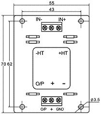 電氣參數(shù) HV50AD HV100AD HV200AD HV300AD HV400AD HV500AD 額定輸入電壓(AC) 50 100 200 300 400 500 V 測(cè)量電壓范圍(AC) 100 200 300 400 500 600 V 額定輸出電流(DC) 4~20 mA 電源電壓 24±5% V 失調(diào)電流 4 mA 失調(diào)電流漂移 ≤±0.005 mA/℃ 線性度 ≤0.5 %FS 響應(yīng)時(shí)間 ≤20 mS 帶寬 20~10000 Hz 絕緣電壓 50HZ,1min 2.5 KV 工作溫度 -25~+85 ℃ 儲(chǔ)存溫度 -40~+125 ℃ 機(jī)械參數(shù)